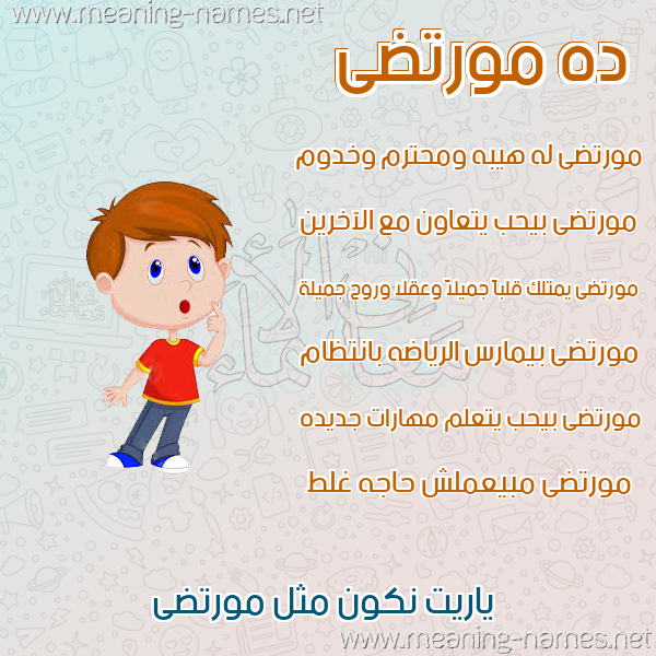 ما معنى اسمي مورتضى ؟ l,vjqn ? what the meaning of Murtada معاني كلمة مورتضى قاموس الأسماء و المعاني و الكلمات .