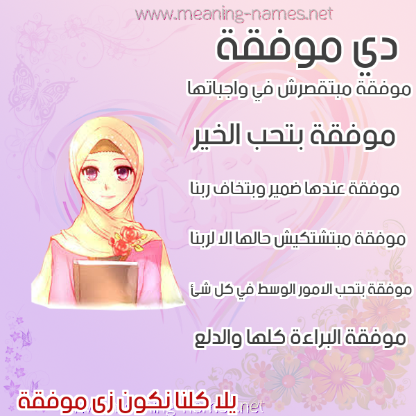 ما معنى اسمي موفقة ؟ l,trm ? what the meaning of Mwfqh معاني كلمة موفقة قاموس الأسماء و المعاني و الكلمات .