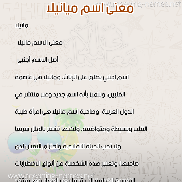 معنى اسم ميانيلا في قاموس المعاني و الأسماء