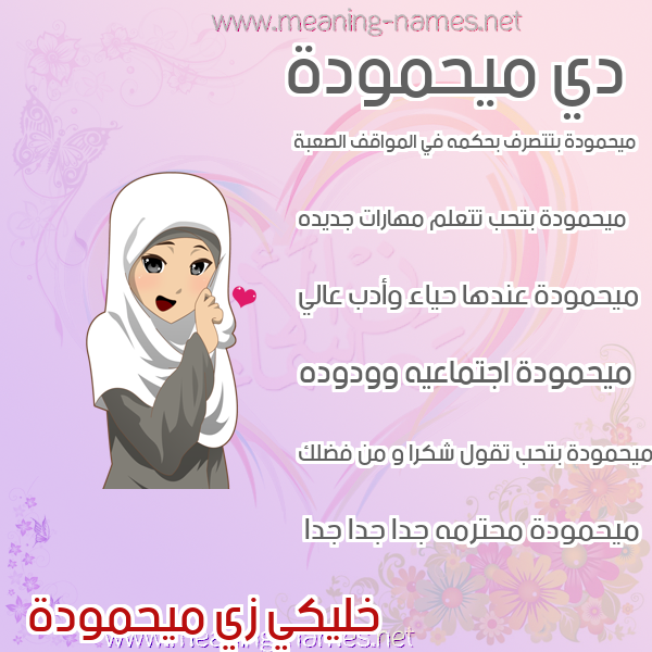 ما معنى اسمي ميحمودة ؟ ldpl,]m ? what the meaning of Mahmoudah معاني كلمة ميحمودة قاموس الأسماء و المعاني و الكلمات .