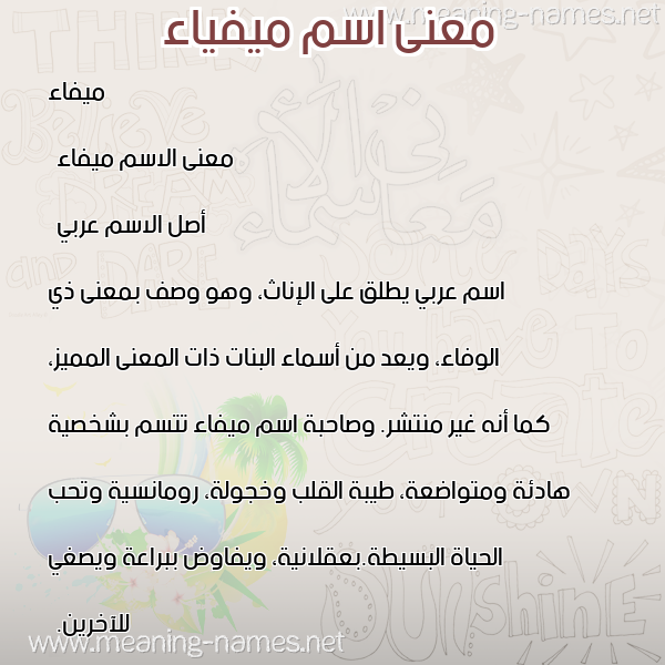 معنى اسم ميفياء في قاموس المعاني و الأسماء