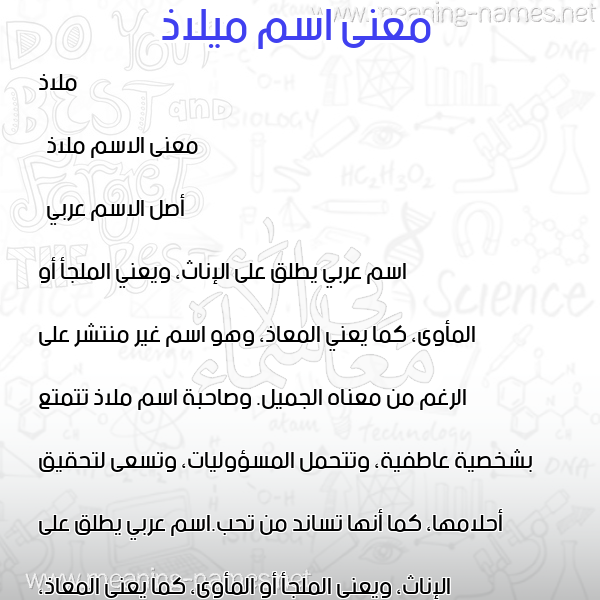 ما معنى اسمي ميلاذ ؟ ldgh` ? what the meaning of Malaz معاني كلمة ميلاذ قاموس الأسماء و المعاني و الكلمات .
