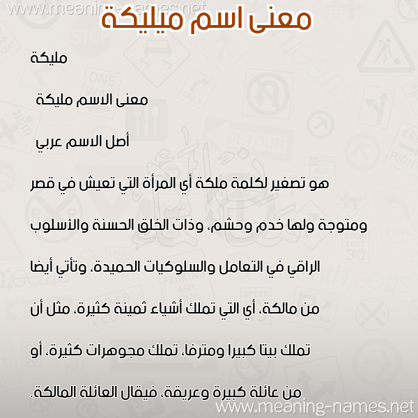 معنى اسم ميليكة في قاموس المعاني و الأسماء