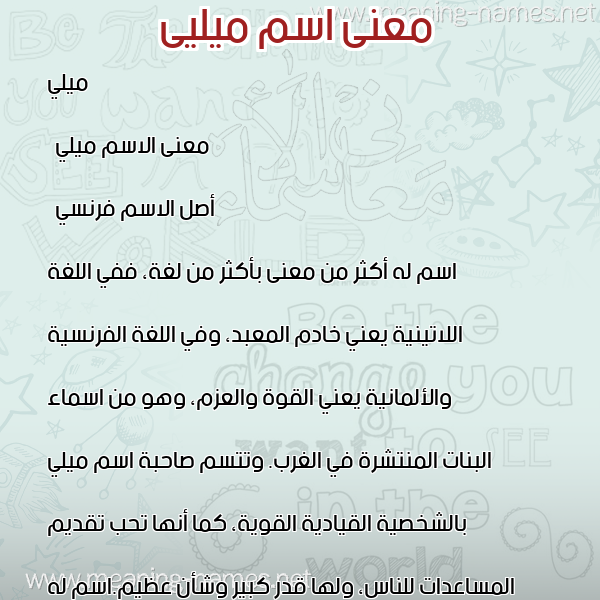 معنى اسم ميليى في قاموس المعاني و الأسماء