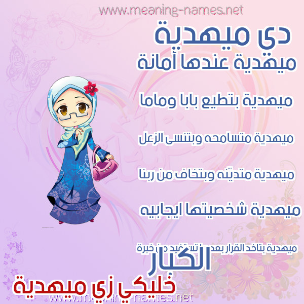 ما معنى اسمي ميهدية ؟ ldi]dm ? what the meaning of Mahdeya معاني كلمة ميهدية قاموس الأسماء و المعاني و الكلمات .