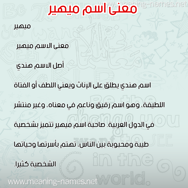 معنى اسم ميهير في قاموس المعاني و الأسماء
