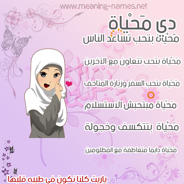 ما معنى اسمي مَحْياة ؟ lQpXdhm ? what the meaning of MAHIAH معاني كلمة مَحْياة قاموس الأسماء و المعاني و الكلمات .