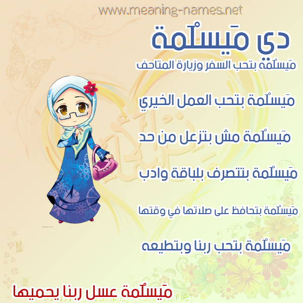 ما معنى اسمي مَيسْلَمة ؟ lQdsXgQlm ? what the meaning of Maslama معاني كلمة مَيسْلَمة قاموس الأسماء و المعاني و الكلمات .