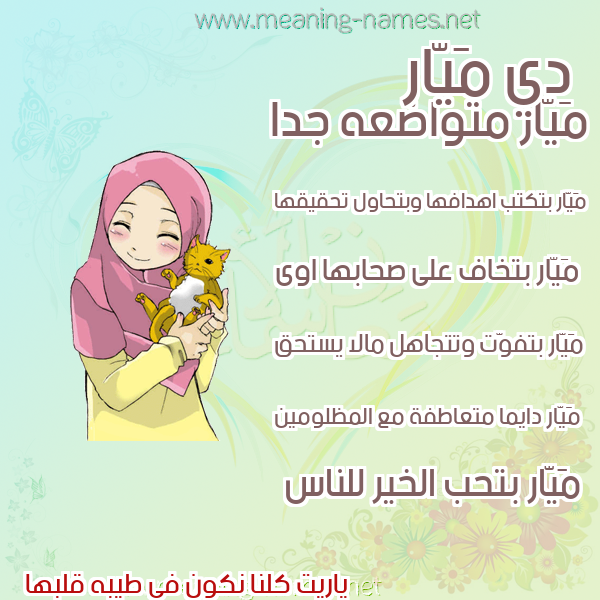 ما معنى اسمي مَيّار ؟ lQd~hv ? what the meaning of Maiar معاني كلمة مَيّار قاموس الأسماء و المعاني و الكلمات .