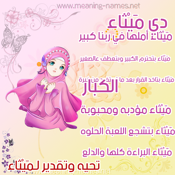 ما معنى اسمي مَيْثاء ؟ lQdXehx ? what the meaning of MAITHAA معاني كلمة مَيْثاء قاموس الأسماء و المعاني و الكلمات .