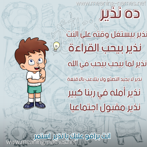 ما معنى اسمي نذير ؟ k`dv ? what the meaning of Nzer معاني كلمة نذير قاموس الأسماء و المعاني و الكلمات .