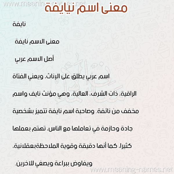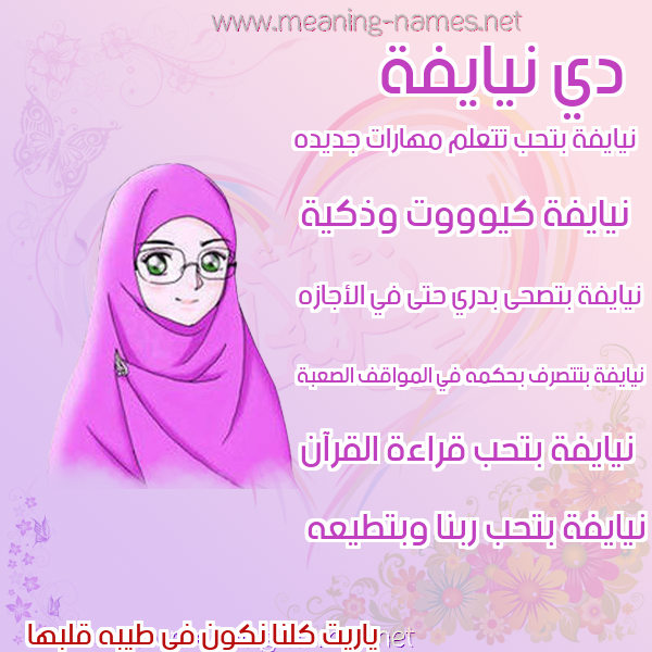 ما معنى اسمي نيايفة ؟ kdhdtm ? what the meaning of Naifa معاني كلمة نيايفة قاموس الأسماء و المعاني و الكلمات .