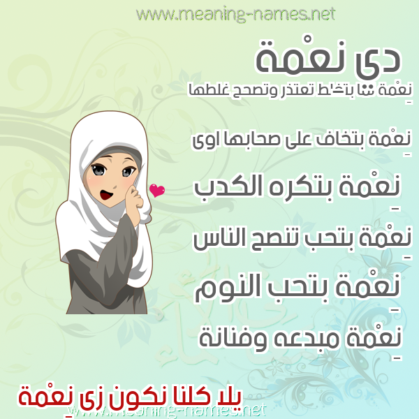معنى اسم نِعْمة في قاموس المعاني و الأسماء