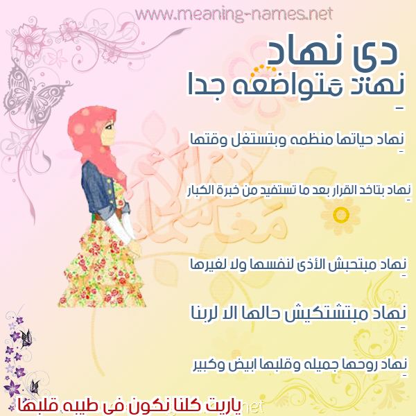 معنى اسم نِهاد في قاموس المعاني و الأسماء