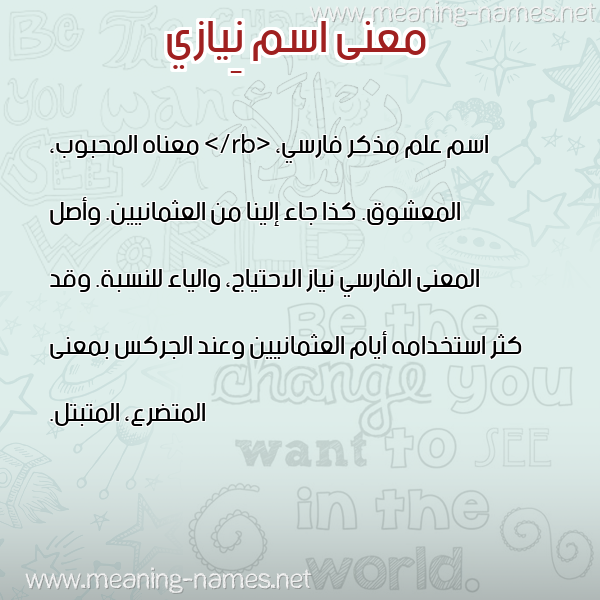 ما معنى اسمي نِيازي ؟ kAdh.d ? what the meaning of NEIAZI معاني كلمة نِيازي قاموس الأسماء و المعاني و الكلمات .