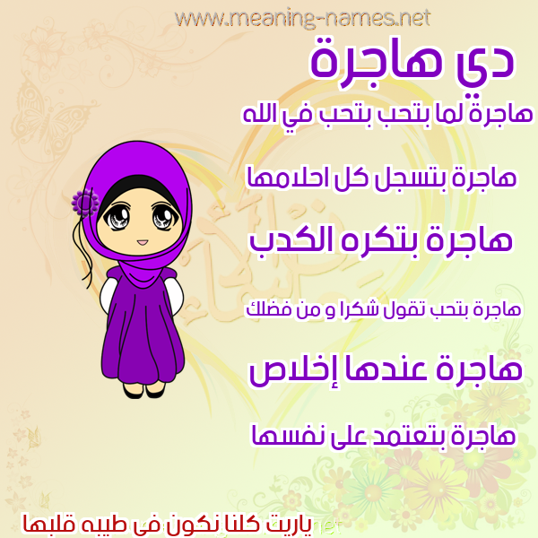 ما معنى اسمي هاجرة ؟ ih[vm ? what the meaning of HAGRH معاني كلمة هاجرة قاموس الأسماء و المعاني و الكلمات .