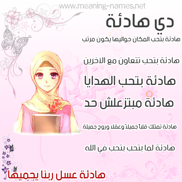 ما معنى اسمي هادئة ؟ ih]zm ? what the meaning of Hadea معاني كلمة هادئة قاموس الأسماء و المعاني و الكلمات .