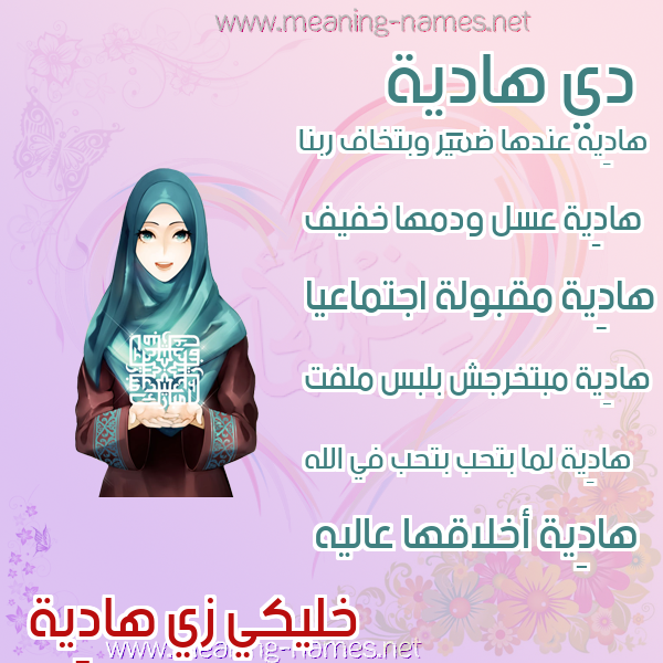 ما معنى اسمي هادِية ؟ ih]Adm ? what the meaning of HADEIH معاني كلمة هادِية قاموس الأسماء و المعاني و الكلمات .