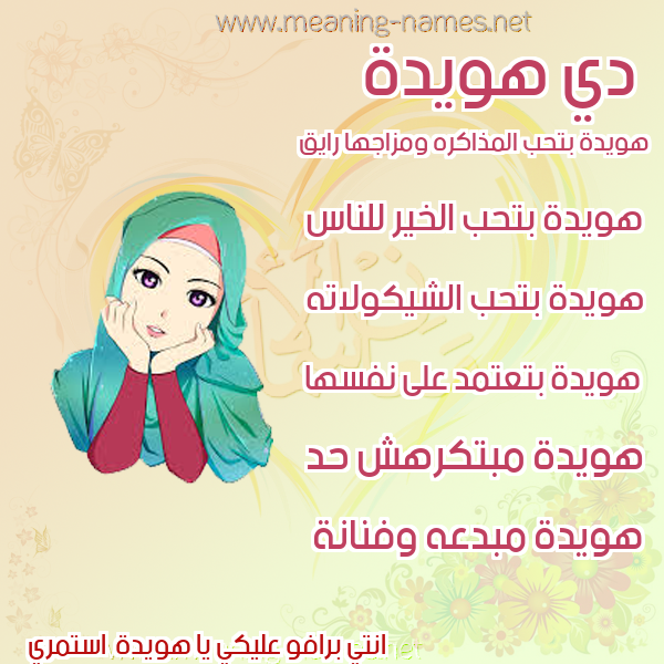 ما معنى اسمي هويدة ؟ i,d]m ? what the meaning of Howida معاني كلمة هويدة قاموس الأسماء و المعاني و الكلمات .
