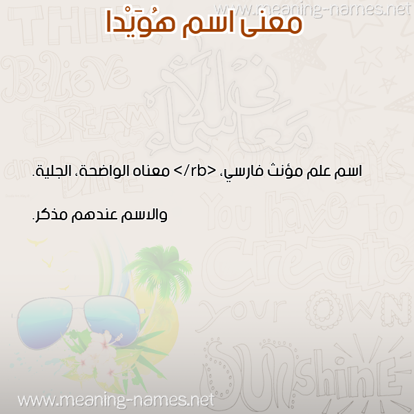 معنى اسم هُوَيْدا في قاموس المعاني و الأسماء