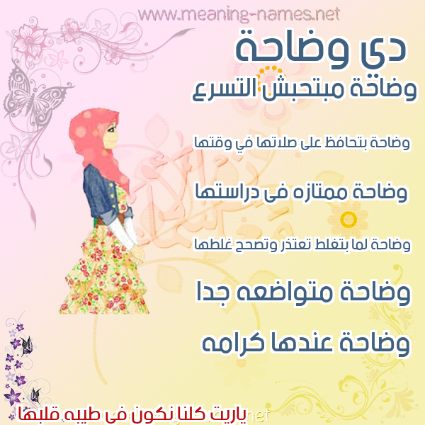 ما معنى اسمي وضاحة ؟ ,qhpm ? what the meaning of ODAHH معاني كلمة وضاحة قاموس الأسماء و المعاني و الكلمات .