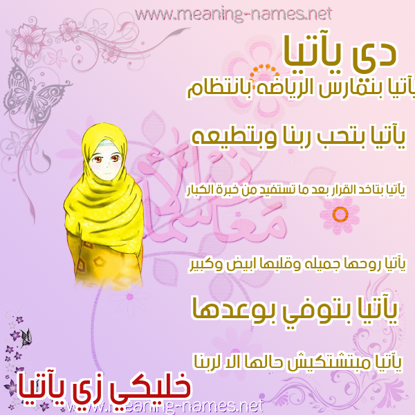 معنى اسم يآتيا في قاموس المعاني و الأسماء