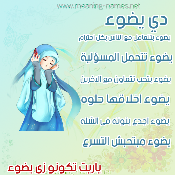 ما معنى اسمي يضوء ؟ dq,x ? what the meaning of Doa معاني كلمة يضوء قاموس الأسماء و المعاني و الكلمات .