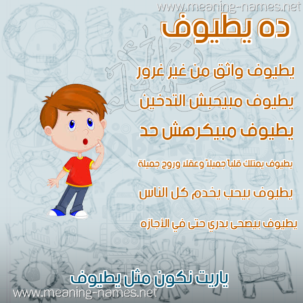 ما معنى اسمي يطيوف ؟ d'd,t ? what the meaning of Toyof معاني كلمة يطيوف قاموس الأسماء و المعاني و الكلمات .