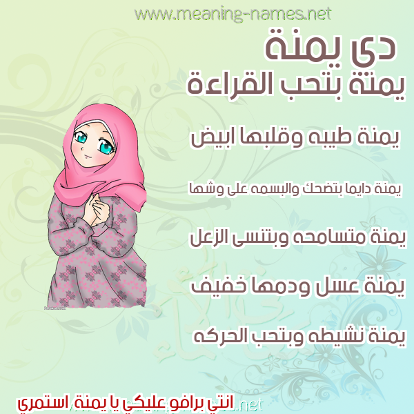 ما معنى اسمي يمنة ؟ dlkm ? what the meaning of Menna معاني كلمة يمنة قاموس الأسماء و المعاني و الكلمات .
