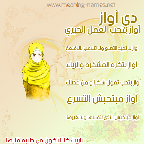 صفات حامل إسم آواز و معنى اسم آواز في قاموس المعاني و الأسماء