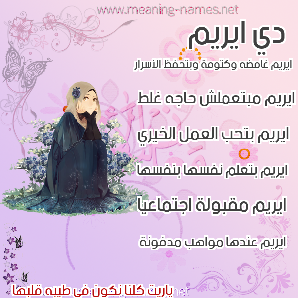 ما معنى اسمي ايريم ؟ hdvdl ? what the meaning of Irem معاني كلمة ايريم قاموس الأسماء و المعاني و الكلمات .