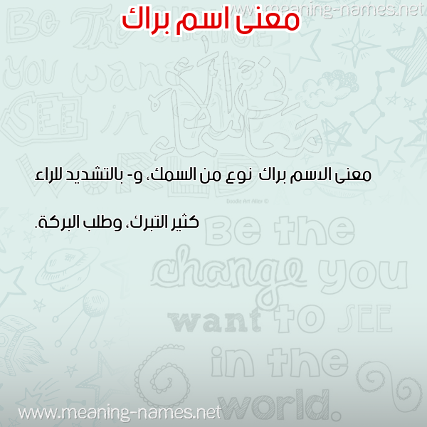 معنى الاسم براك : نوع من السمك، و- بالتشديد للراء: كثير التبرك، وطلب البركة.