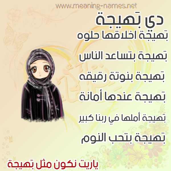 صفات حامل إسم بَهيجة و معنى اسم بَهيجة في قاموس المعاني و الأسماء
