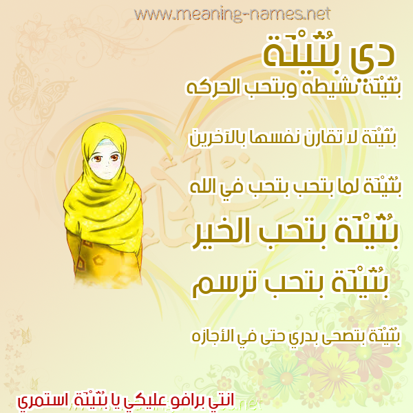 صفات حامل إسم بُثَيْنَة و معنى اسم بُثَيْنَة في قاموس المعاني و الأسماء