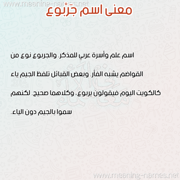 صفات حامل إسم جَرْبوع و معنى اسم جَرْبوع في قاموس المعاني و الأسماء