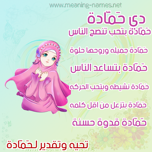 صفات حامل إسم حَمَّادة و معنى اسم حَمَّادة في قاموس المعاني و الأسماء
