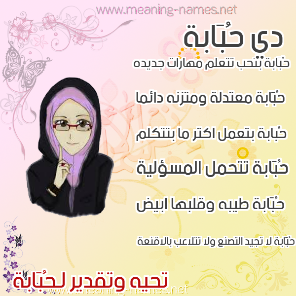 صفات حامل إسم حُبَابة و معنى اسم حُبَابة في قاموس المعاني و الأسماء