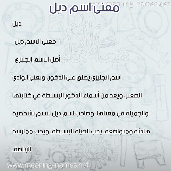 ما معنى اسمي ديل ؟ ]dg ? what the meaning of deil معاني كلمة ديل قاموس الأسماء و المعاني و الكلمات .
