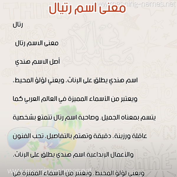 صفات حامل إسم رتيال و معنى اسم رتيال في قاموس المعاني و الأسماء