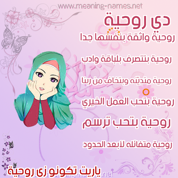 ما معنى اسمي روحية ؟ v,pdm ? what the meaning of Rawhia معاني كلمة روحية قاموس الأسماء و المعاني و الكلمات .