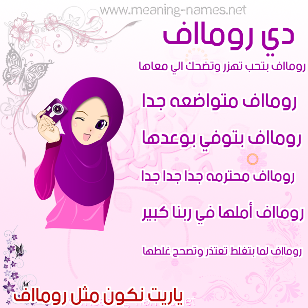 ما معنى اسمي رومااف ؟ v,lhht ? what the meaning of Romaf معاني كلمة رومااف قاموس الأسماء و المعاني و الكلمات .