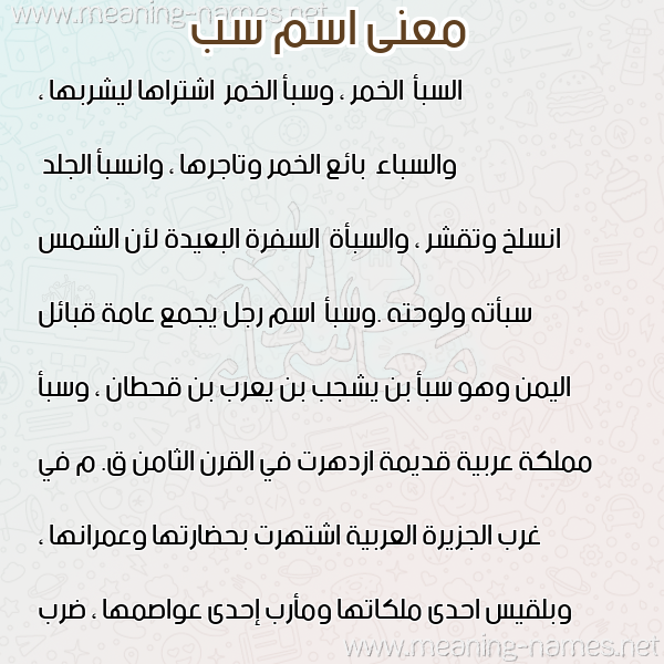 صفات حامل إسم سب و معنى اسم سب في قاموس المعاني و الأسماء