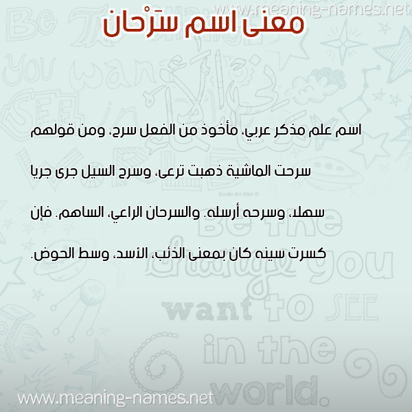 صفات حامل إسم سَرْحان و معنى اسم سَرْحان في قاموس المعاني و الأسماء