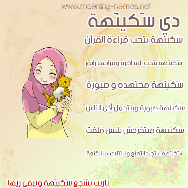 صفات حامل إسم سَكينَهة و معنى اسم سَكينَهة في قاموس المعاني و الأسماء