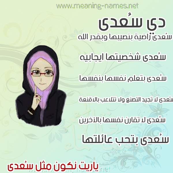 صفات حامل إسم سُعدى و معنى اسم سُعدى في قاموس المعاني و الأسماء