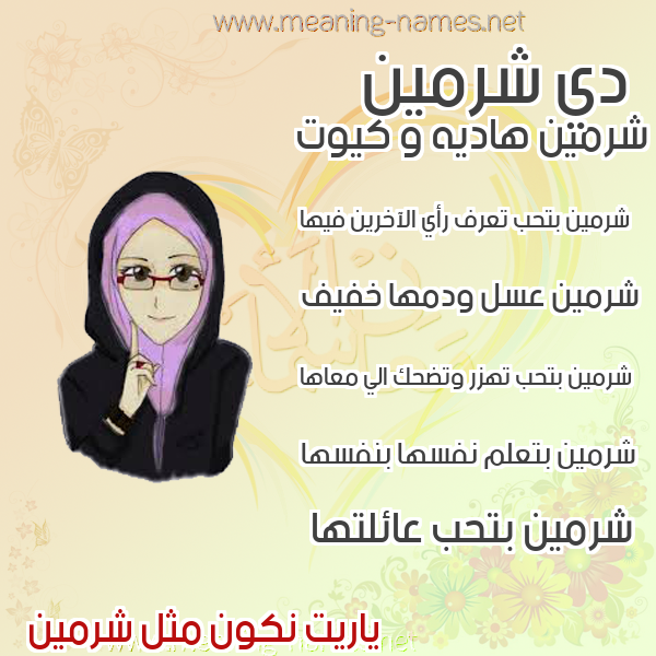 ما معنى اسمي شرمين ؟ avldk ? what the meaning of Shrmen معاني كلمة شرمين قاموس الأسماء و المعاني و الكلمات .
