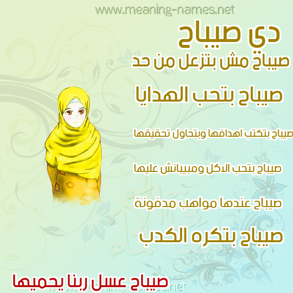 ما معنى اسمي صيباح ؟ wdfhp ? what the meaning of Sabah معاني كلمة صيباح قاموس الأسماء و المعاني و الكلمات .