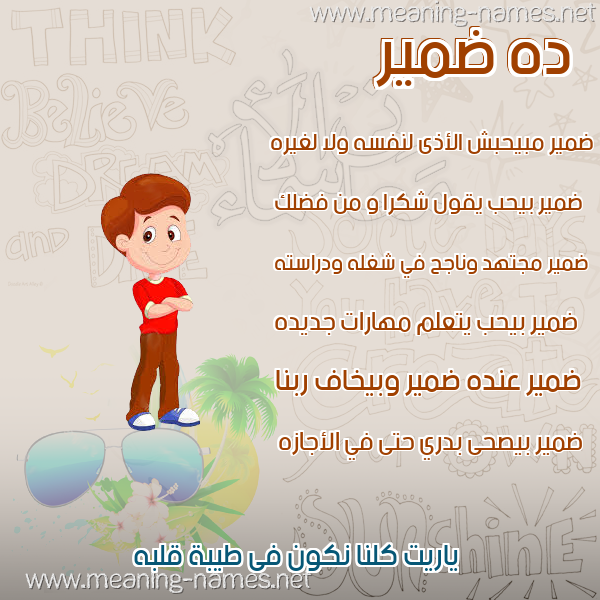 ما معنى اسمي ضمير ؟ qldv ? what the meaning of Dmyr معاني كلمة ضمير قاموس الأسماء و المعاني و الكلمات .