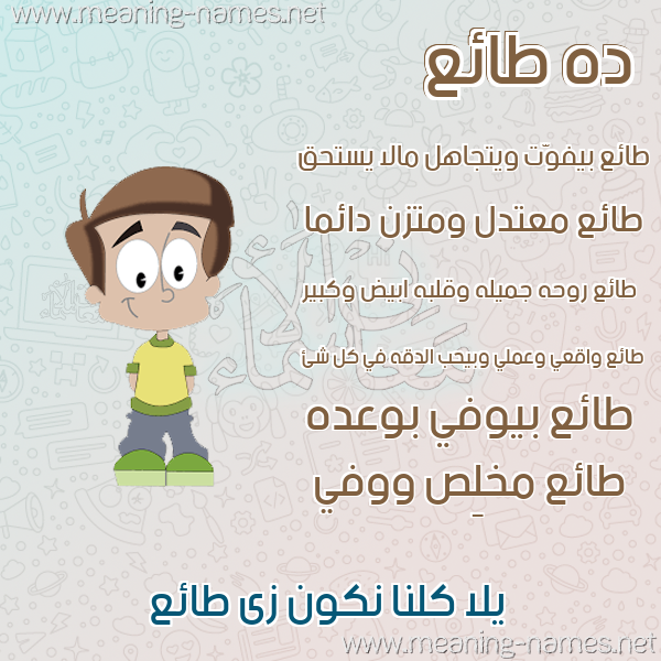 ما معنى اسمي طائع ؟ 'hzu ? what the meaning of TAEA معاني كلمة طائع قاموس الأسماء و المعاني و الكلمات .