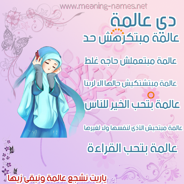 ما معنى اسمي عالمة ؟ uhglm ? what the meaning of Aalmh معاني كلمة عالمة قاموس الأسماء و المعاني و الكلمات .